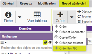 Dans les actions du nœud de génie civil cliquer sur Créer. |