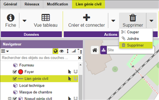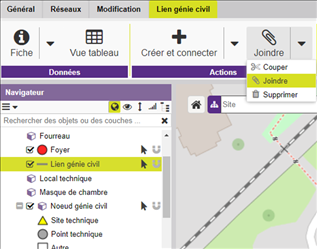 Sélectionner deux liens GC à joindre. Cliquer sur « Joindre ». Les deux liens sont désormais joints. Les attributs du nouveau tronçon joint sont récupérés du premier lien