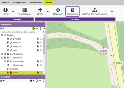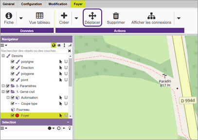 Sélectionner un point pour le nouvel emplacement de l’objet. Le foyer est désormais déplacé. |