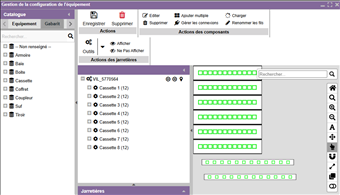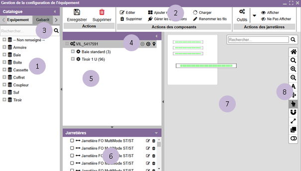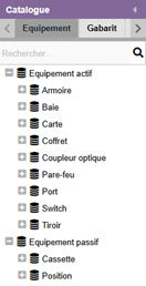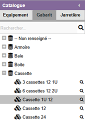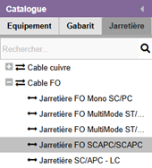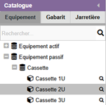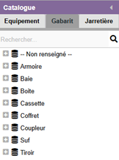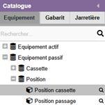 Accès aux catalogues des équipements, des gabarits et des jarretières. |