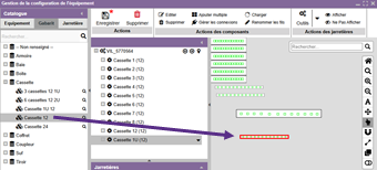 ! Cette action peut être lancée depuis n’importe quel équipement. L’utilisateur peut par exemple afficher toutes les jarretières partant d’un tiroir ou d’une armoire. |