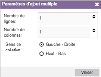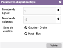 Renseigne les champs et Clique sur « Valider » (le nombre de lignes et de colonnes détermine la manière et le nombre de fois que l’équipement sélectionné dans le catalogue va être itéré) :