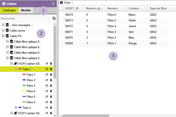 En général il faut créer un modèle de câble par combinaison type de fibre / code couleur.