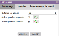 d’outils avec actions (Zoom, Signets, Buffer, Galerie de fond de plan). |