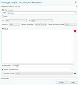 La boite de dialogue associée au type de prototype s’affiche. Cela