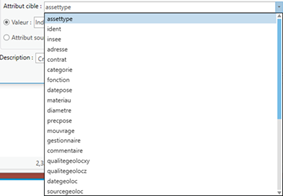 En fonction du type de l’attribut, le champ associé au bouton radio « Valeur fixe » est actualisé (champ libre, liste, calendrier). |