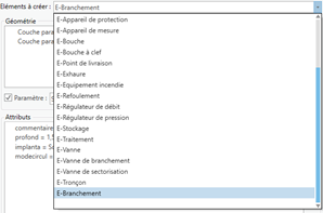 « Couche » est activée et contient la liste des couches disponibles ; ► la liste