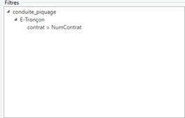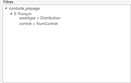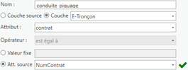 ! Le filtre basé la valeur d’un attribut de la source n’est possible qu’avec l’option « Couche ». Exemple : recherche du tronçon (Couche) le plus proche du point GPS (Couche source du prototype) dont l’attribut « contrat » correspond à la valeur de « NumContrat » du point GPS. |