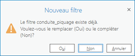 Si le nom du filtre existe déjà dans la liste, le message suivant est
