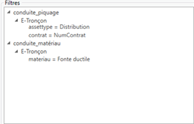 (indiquée dans le titre). ! Pour modifier un filtre, donner le même nom dans le champ « Nom : » et demander le remplacement au moment de la demande d’ajout. ! Dans un filtre, les conditions entre les différents attributs sont associées avec la règle « ET » et les conditions pour un même attribut avec la règle « OU ». |