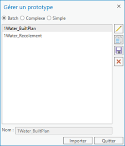 boites de dialogue de prototype batch et de prototype simple via le bouton