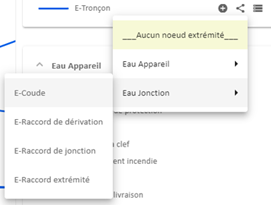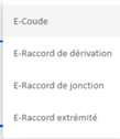 Une liste des jonctions et des appareils possibles pour la canalisation courante s’affiche.