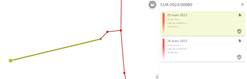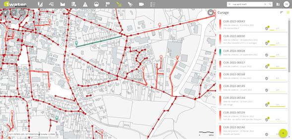 La mise en évidence d’un curage s’effectue à partir de la liste ou de la carte.