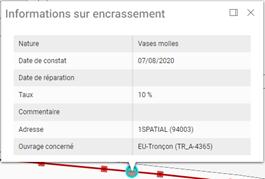 Consulte les informations d’un encrassement sous la forme d’une fenêtre contextuelle en cliquant dessus dans la carte. ! Cette fonctionnalité est disponible uniquement si la thématique « Encrassement » est activée. |