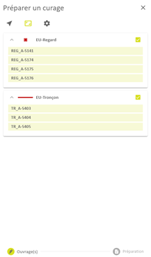Cadre sur l’ouvrage (depuis la liste) ou sur l’ensemble du curage (depuis l’entête). |