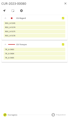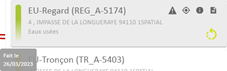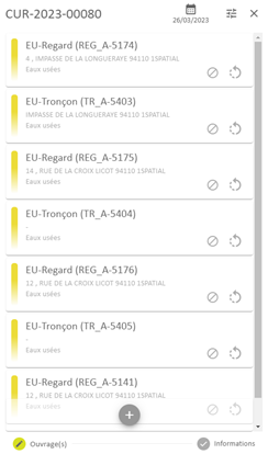 jour dans la liste et dans la carte avec le code couleur associé. ! Si l’ouvrage a été ajouté au cours de l’opération de curage courante (non programmé à la préparation), il est retiré du curage et n’apparait plus, ni dans la liste, ni dans la carte. |