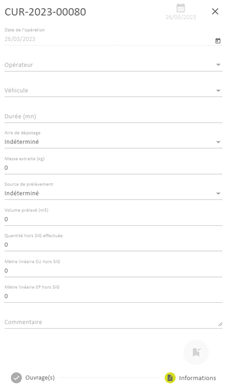 Cette fonctionnalité permet de créer un curage et de renseigner ses principales caractéristiques.