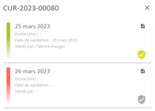 Valide les opérations de curage. Cette fonctionnalité est présente si la validation est configurée en mode manuel et elle nécessite le droit de gestion. L’indicateur numérique précise le nombre d’opérations à valider. |