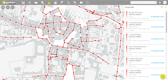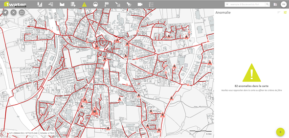 ainsi que les ouvrages concernés dans la carte. Met en évidence les fiches associées dans la liste. La(s) anomalie(s) sélectionnée(s) avant sont conservée(s) dans la