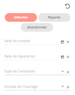 valeurs, plages de date, pour afficher : ► L’état ; ► La date de constat et date de réparation ; ► Le type d’anomalie ou d’ouvrage. |
