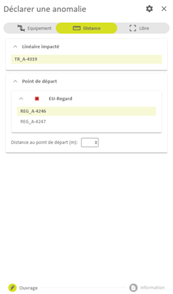 « Distance » pour déclarer une anomalie sur un tronçon par distance. |