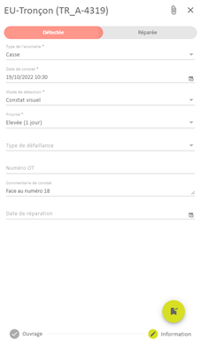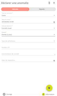 ou compléter les informations de l’anomalie. Passe à l’état « Réparée » et remplit les champs du formulaire
