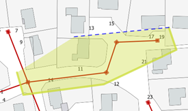 Le curseur dans la carte passe en mode construction d’un polygone sans