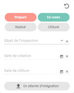 valeurs, plages de date, pour afficher : ► État ; ► Objet de l’inspection ; ► Date de création ; ► Date de clôture ; ► En attente d’intégration. |