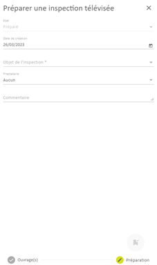 Prépare une nouvelle inspection . Cette fonctionnalité nécessite le droit d’édition. |