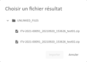 Importe le fichier résultat d’une inspection dont le fichier résultat a été déposé sur le serveur mais le rapprochement automatique n’a pas été réalisé. Le fichier résultat à prendre en compte doit être sélectionné manuellement. |