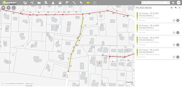 La mise en évidence d’une inspection du réseau s’effectue à partir de la liste ou de la carte.