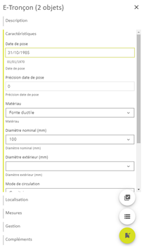 Figure 109 : Action de modification au niveau objet linéaire Eau potable