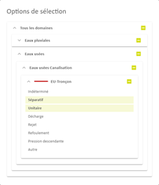La thématique courante n’est plus affichée dans la carte ni la légende. Les ouvrages du projet sont sélectionnés. |