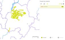 sélection dans la carte. Met en évidence les fiches associées dans la liste. Le(s) projet(s) de notation sélectionné(s) avant sont conservé(s)