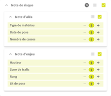 Le principe de calcul d’une note est défini au niveau administrateur. L’utilisateur, s’il possède les droits, est autorisé uniquement, pour une noté donnée, à :