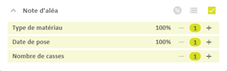 ! Le taux de renseignement n’est disponible que pour les critères de type « attribut simple » (correspondent à un attribut de l’ouvrage). Le bouton d’affichage des taux est désactivé pour la note courante. |
