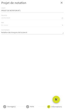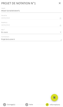 ► Informations : pour définir le projet de notation et l’enregistrer.