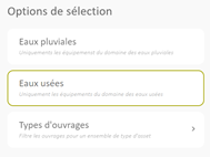 des ouvrages de la visite s’actualise. ► Aucune option sélectionnée : tous les ouvrages de la visite sont présents dans la liste. ► Option « A faire » sélectionnée : les ouvrages qui restent à faire à la date de l’opération de visite courante sont présents dans la liste. ► Option « Fait » sélectionnée : les ouvrages qui sont réalisés à la date de l’opération de visite courante sont présents dans la liste. ► Option « Inaccessible » sélectionnée : les ouvrages