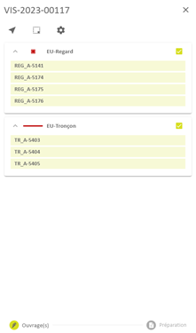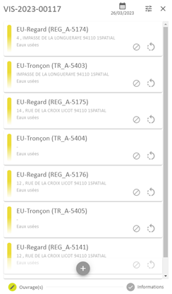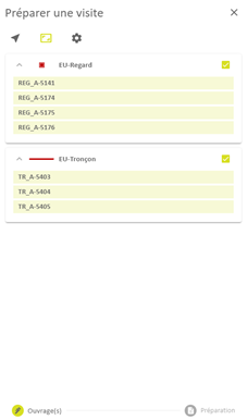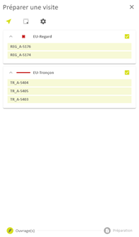 jour dans la liste et dans la carte avec le code couleur associé. ! Si l’ouvrage a été ajouté au cours de l’opération de visite courante (non programmé à la préparation), il est retiré de la visite et n’apparait plus, ni dans la liste, ni dans la carte. |