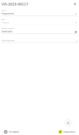 ► Préparation : pour renseigner les principales caractéristiques de la visite.