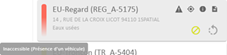 L’ouvrage est ajouté à la visite pour l’opération de visite courante. ! L’état de l’ouvrage est automatiquement passé à l’état « visité ». L’ouvrage apparait avec cet état dans la liste et dans la carte. ! La sélection applique une priorité par rapport à une zone de tolérance avec d’abord les ponctuels puis les linéaires. |
