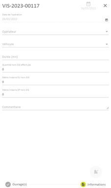! L’accès à la page « Informations » n’est possible que si un traitement a déjà été réalisé pour la date d’opération courante (au moins 1 ouvrage a déjà été visité ou indiqué inaccessible à cette date). |