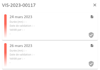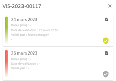 Valide les opérations de visite. Cette fonctionnalité est présente si la validation est configurée en mode manuel et elle nécessite le droit de gestion. L’indicateur numérique précise le nombre d’opérations à valider. |