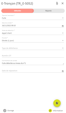 ► Réparation : pour renseigner les informations liées à la réparation de l’anomalie.