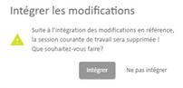 validation n’a pas été réalisée. ! Si l’intégration échoue, la session est conservée et doit être corrigée avant de faire une nouvelle demande d’intégration. ! Si l’intégration réussit, la session est clôturée et supprimée de la liste. |