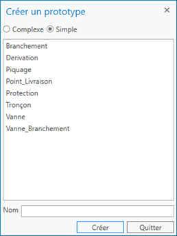 La boite de dialogue associée au type de prototype s’affiche. Cela