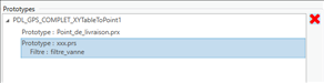 La boite de création de filtre se ferme. La boite du prototype qui a appelé la boite de création de filtre s’affiche. |