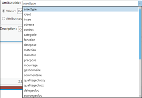 En fonction du type de l’attribut, le champ associé au bouton radio « Valeur fixe » est actualisé (champ libre, liste, calendrier). |