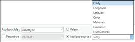 En fonction du type de l’attribut, le champ associé au bouton radio « Valeur fixe » (4) est actualisé (champ libre, liste, calendrier). |