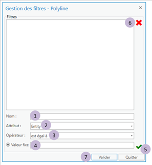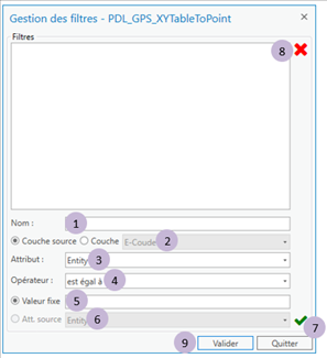 La boite de gestion des filtres permet d’ajouter un filtre, de